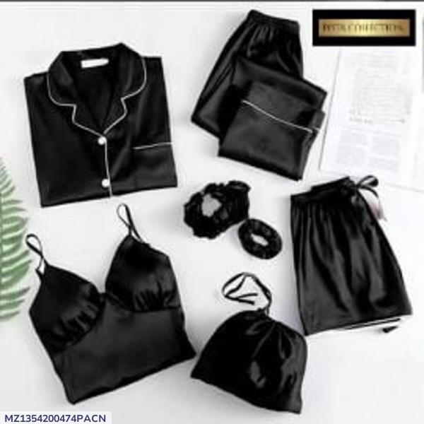 5pc woman's stitches silk plan night suit